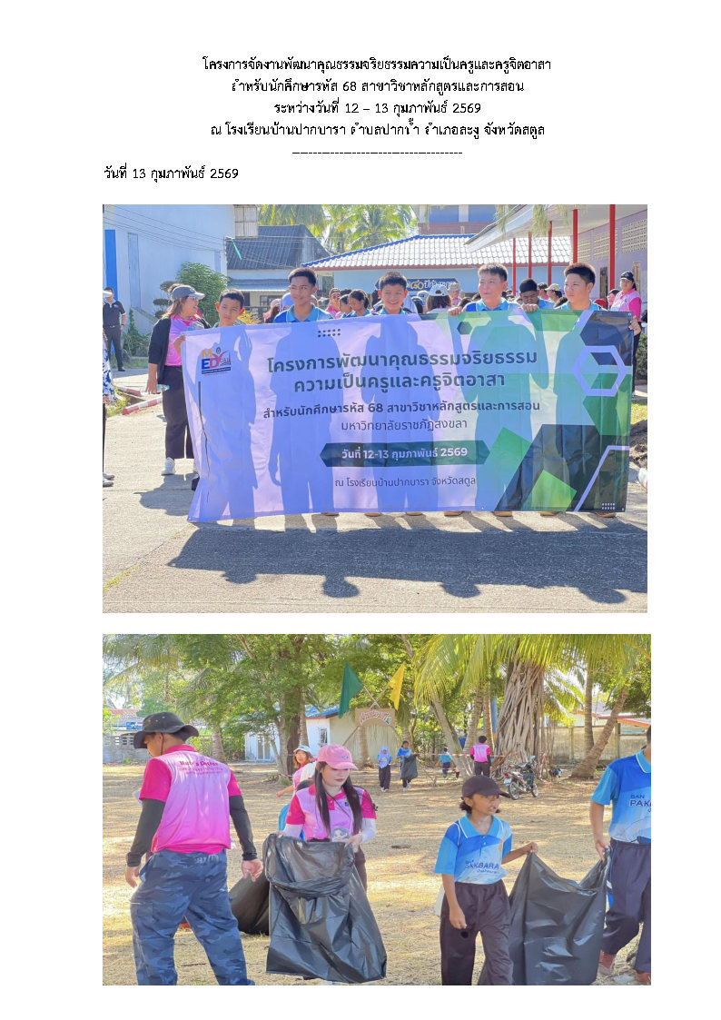 กิจกรรมที่ 9 จัดงานพัฒนาคุณธรรม จริยธรรมความเป็นครูและครูจิตอาสา สำหรับนักศึกษารหัส 68 สาขาวิชาหลักสูตรและการสอน